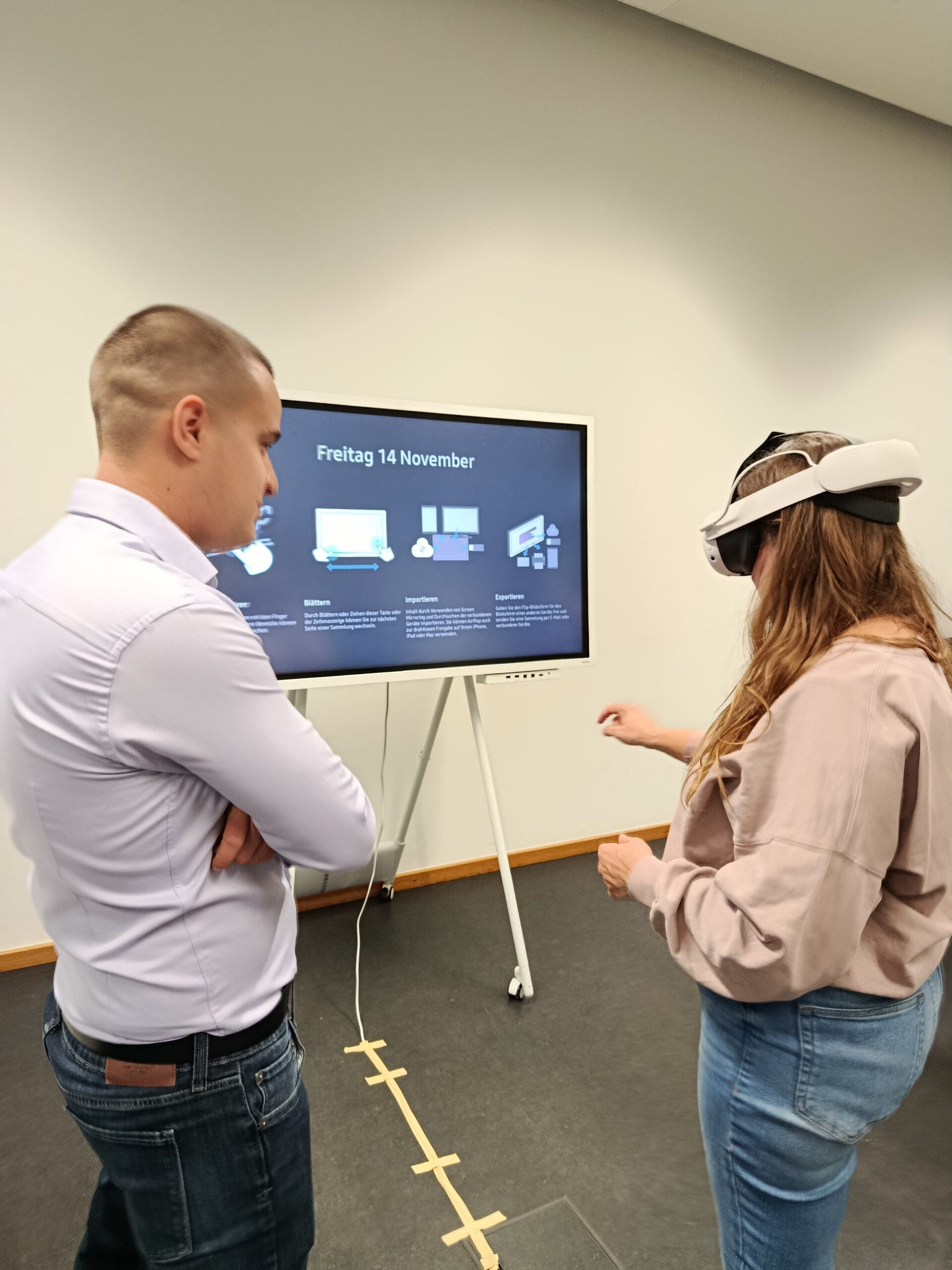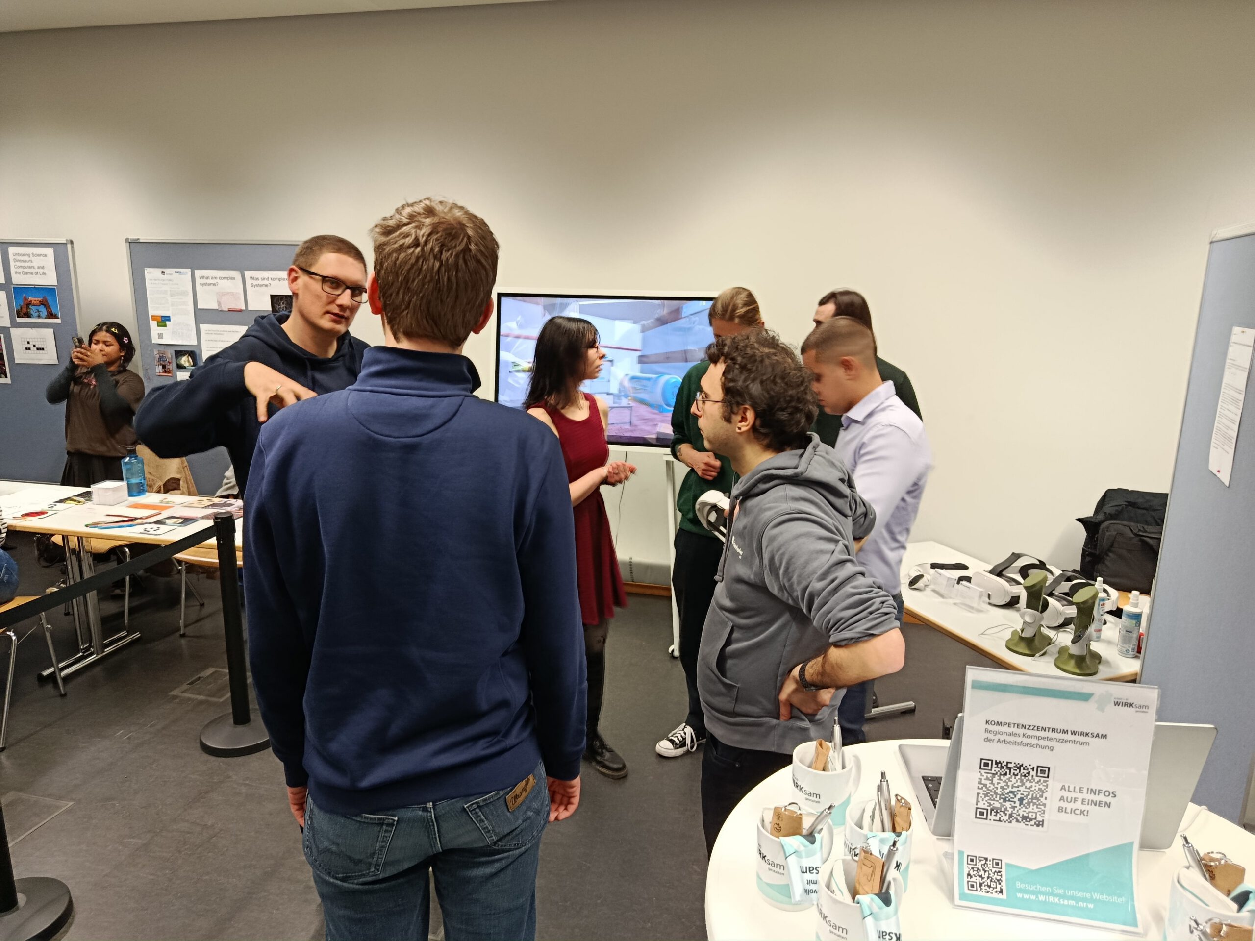 Im Rahmen der diesjährigen Wissenschaftsnacht erhielten die Besucherinnen und Besucher die Gelegenheit, innovative Technologien hautnah zu erleben. Mit dem XR-Demonstrator des Kompetenzzentrums WIRKsam konnten sie im virtuellen Raum das Arbeiten mit KI selbst ausprobieren. Die darin gestellte Arbeitsaufgabe bestand darin, Fehlerstellen an einem Carbonflügel zu markieren: zuerst ohne, dann mit KI-Unterstützung. Dieses praxisnahe Beispiel veranschaulicht eindrucksvoll das Potenzial von KI für die Gestaltung der Arbeitswelt von morgen.