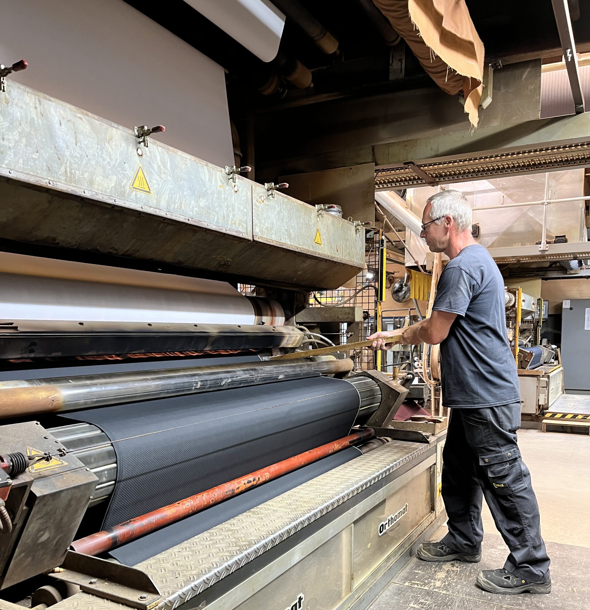Beim Kaschierprozess der AUNDE Group SE werden bis zu drei Materialkomponenten mithilfe von Hitze dauerhaft miteinander verbunden. Dabei wird beispielsweise eine Folie oder ein Vlies über eine Schaumschicht mit einer weiteren textilen Lage kombiniert. Auf diese Weise entstehen komfortable und hochwertige Textilien, die in der Automobilindustrie zum Einsatz kommen.