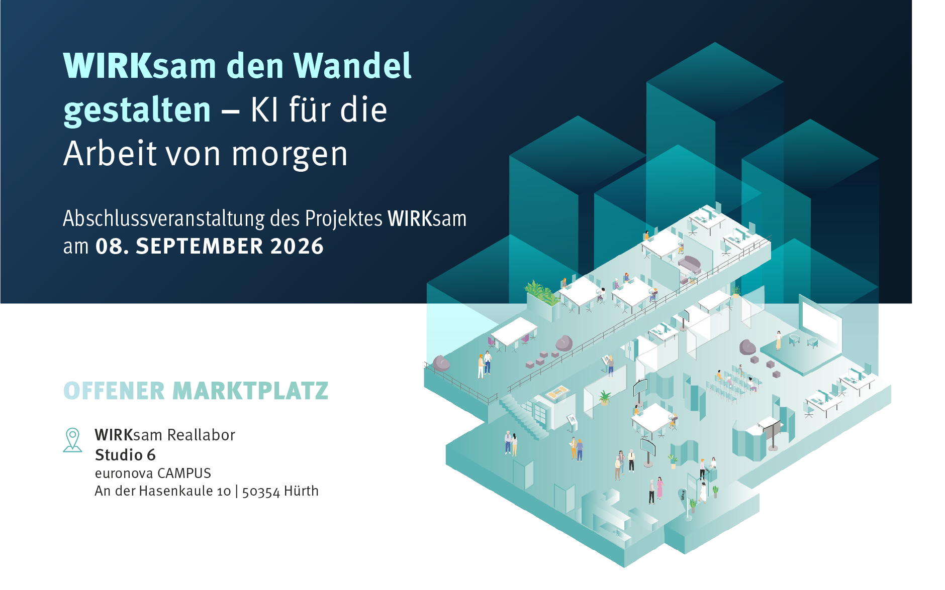 Unter dem Motto „WIRKsam den Wandel gestalten – KI für die Arbeit von morgen“ blicken wir auf fünf Jahre Kompetenzzentrum WIRKsam zurück – mit zentralen Erkenntnissen, erprobten Ansätzen und praktischen Einblicken aus der Projektarbeit.